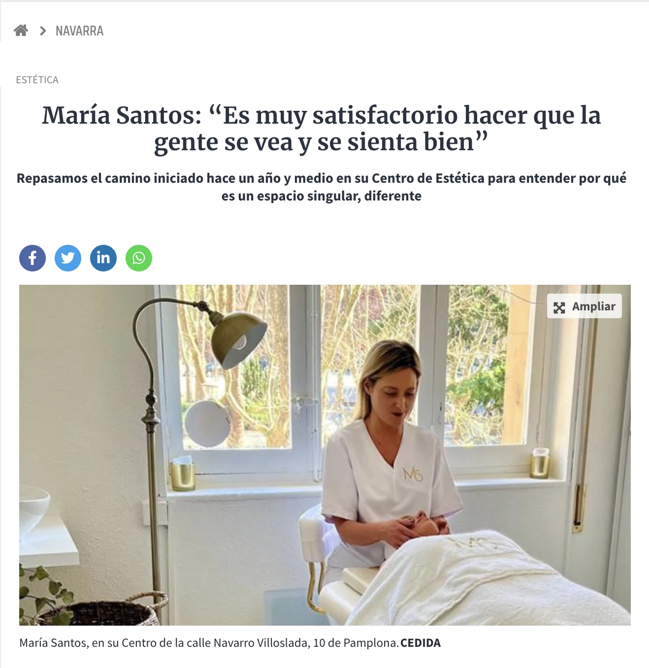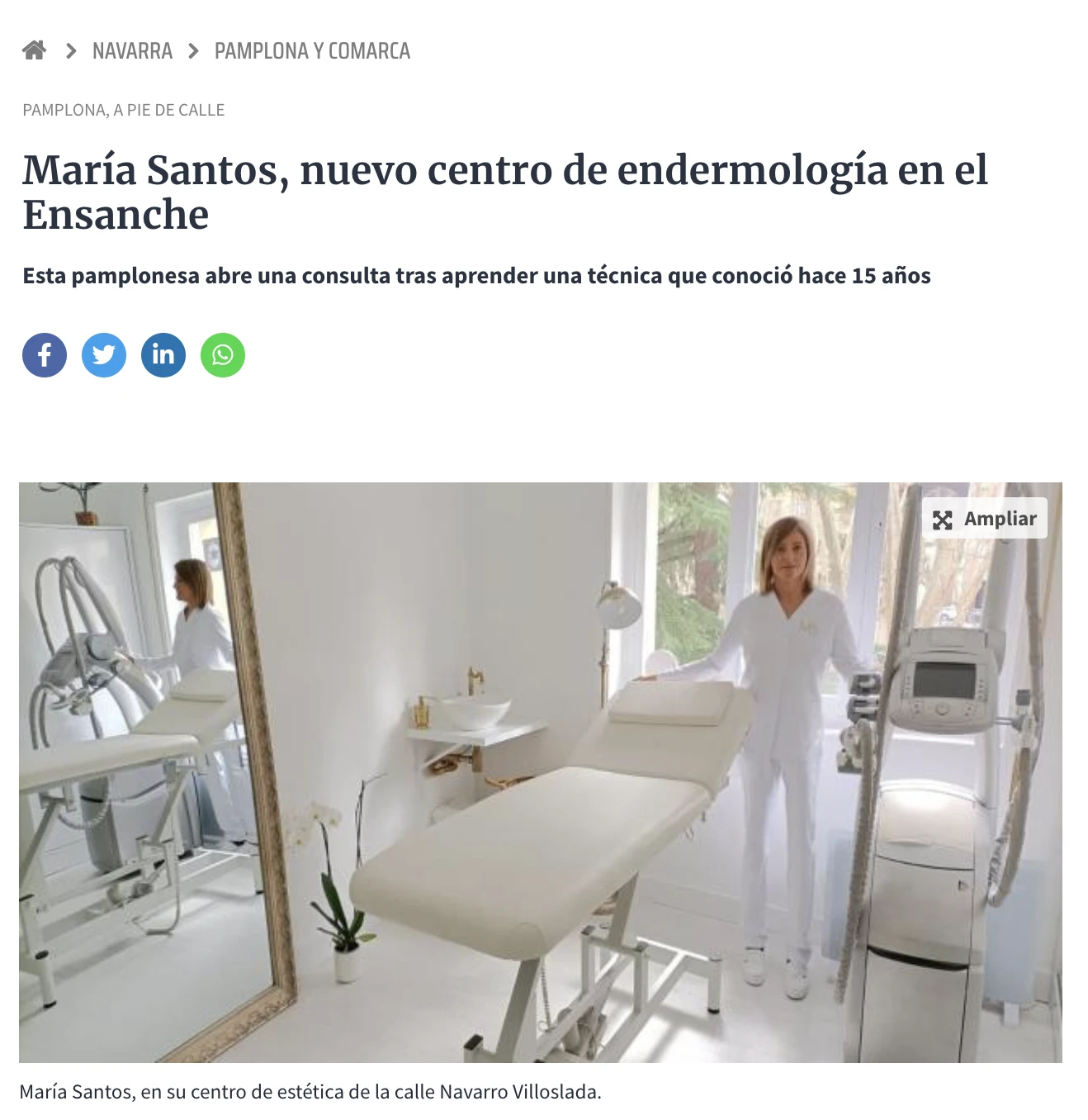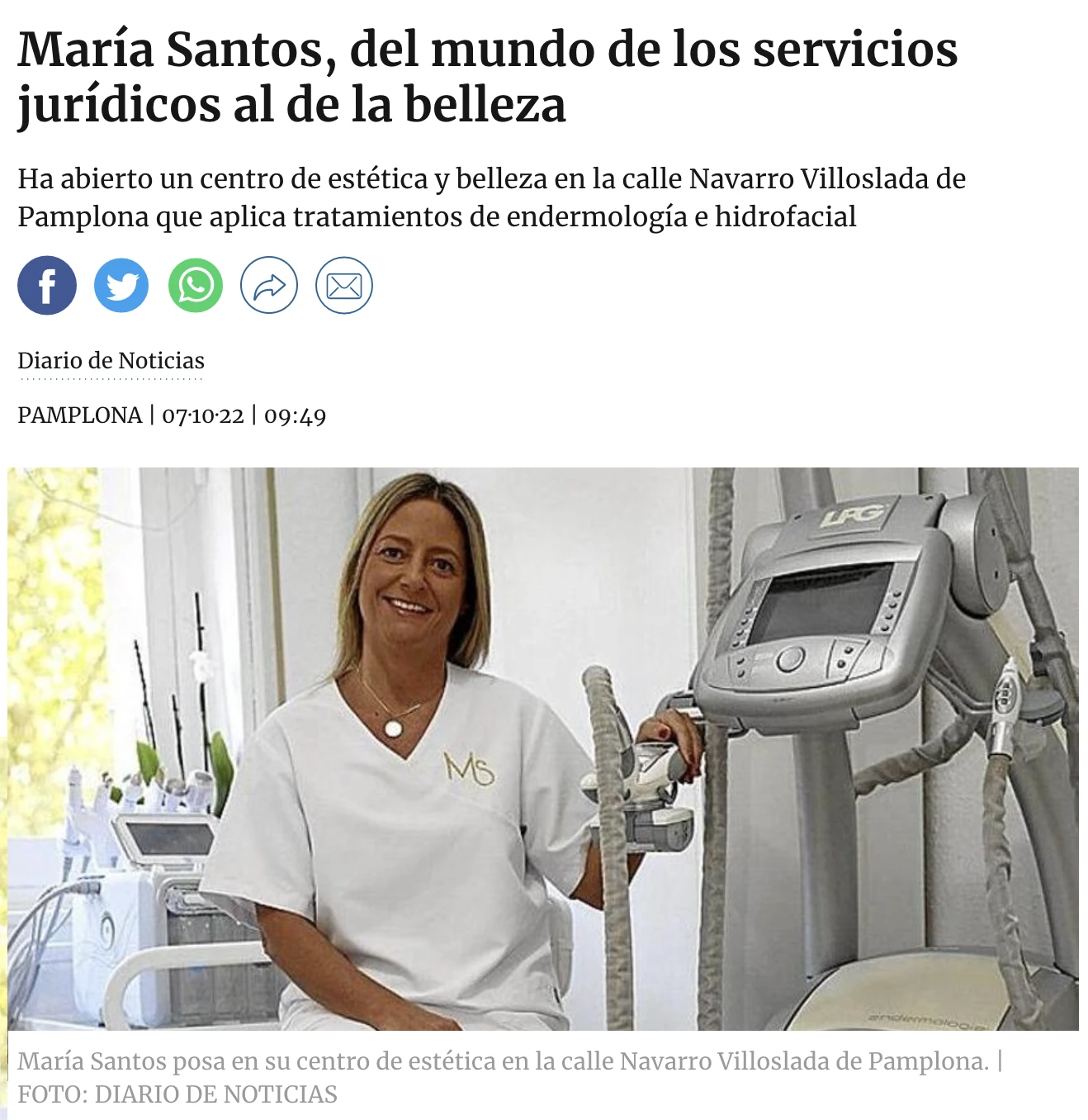 “La estética siempre me ha llamado la atención, la endermología es un tratamiento que conozco desde hace 20 años. Cuando probé la técnica por primera vez, me quedé sorprendida con los resultados. Por eso, pasé de dedicarme al mundo de los servicios jurídicos a formarme en estética con cursos teóricos y prácticos para poder abrir mi propio negocio. Así nació Centro María Santos”